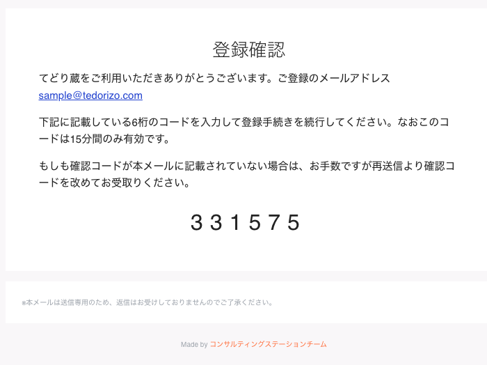 ※確認コードは15分のみ有効です。確認コードの有効時間が切れた場合は、「再送する」を押して認証メールを再受信してください。