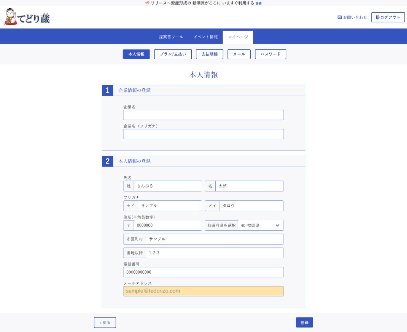 「マイページ」ではお客様が登録時に入力した登録情報を確認、編集することができます。