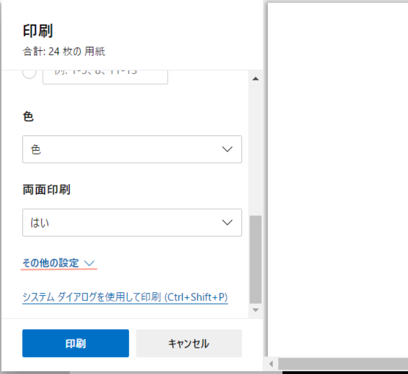 Edgeの場合は、印刷画面の「その他の詳細」を選択します。