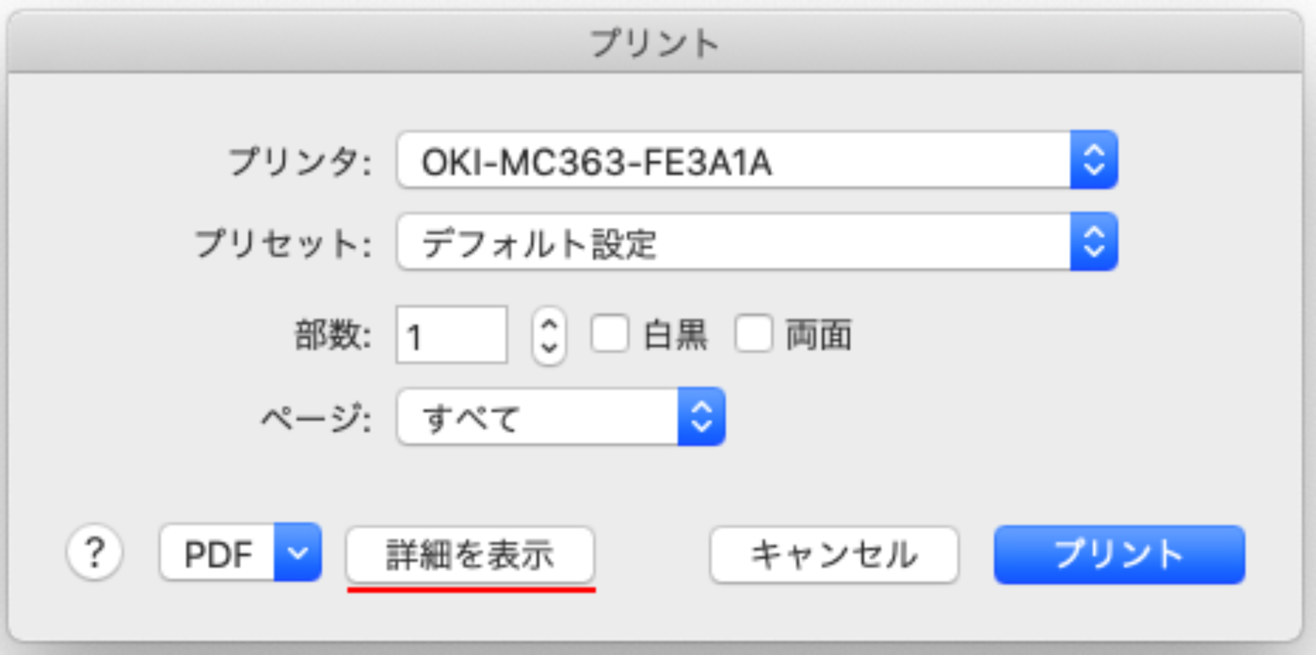 Firefoxの場合は、印刷画面の「詳細を表示」を選択します。