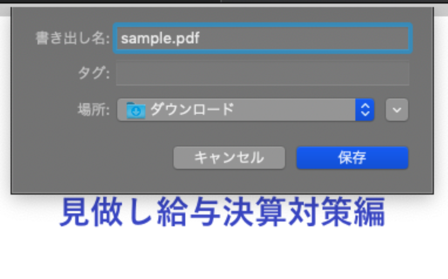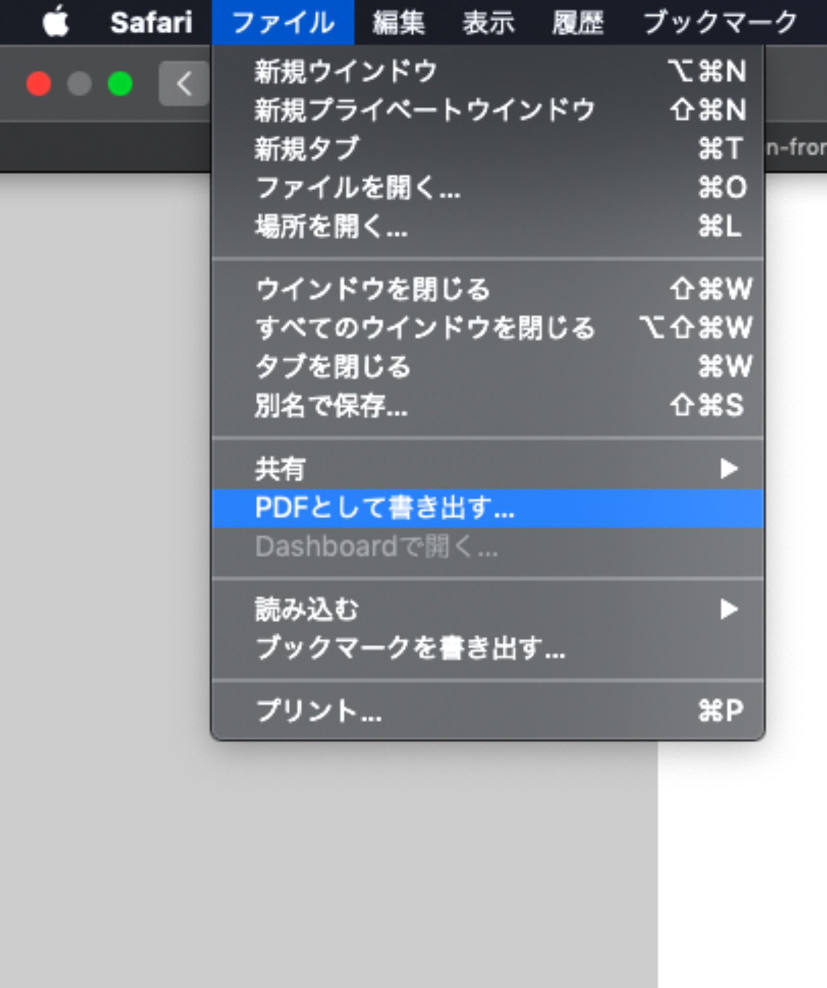 資料生成後、メニューバーの「ファイル」から「PDFとして書き出す」を選択します。